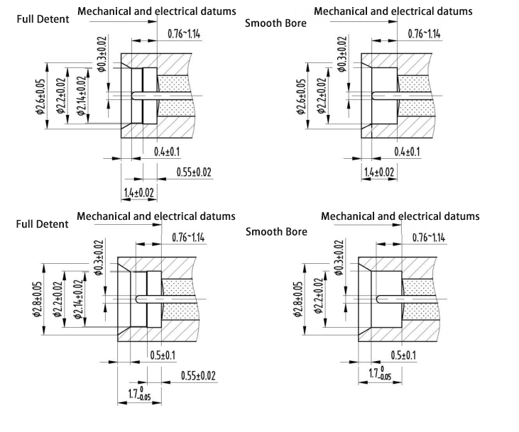 এস মানে আলোর গর্ত। ইন্টারফেসের মাত্রাগুলিকে স্ট্যান্ডার্ড ইন্টারফেস মাত্রা এবং সংক্ষিপ্ত ইন্টারফেস মাত্রায় বিভক্ত করা হয়েছে, উভয়ই SMPM-K টাইপ প্লাগের সাথে আন্তঃমিলযোগ্য।