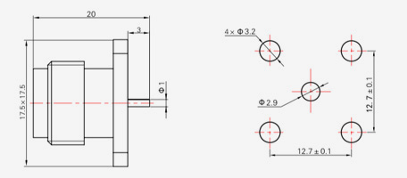 4. .052 ইঞ্চি (1.32 মিমি)/.054 (1.37 মিমি) ব্যাসের পিনের সাথে মিলিত হলে VSwR-এর সাথে দেখা করতে আইডি।